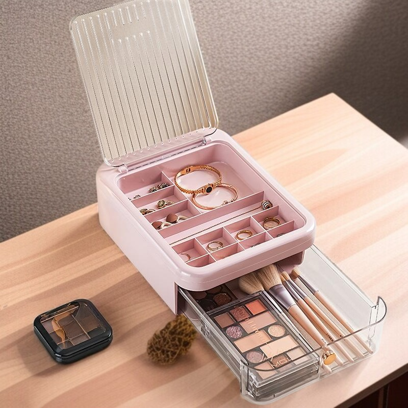 Hordozható, többrekeszes ékszerdoboz porvédelemmel, különféle ékszerekhez